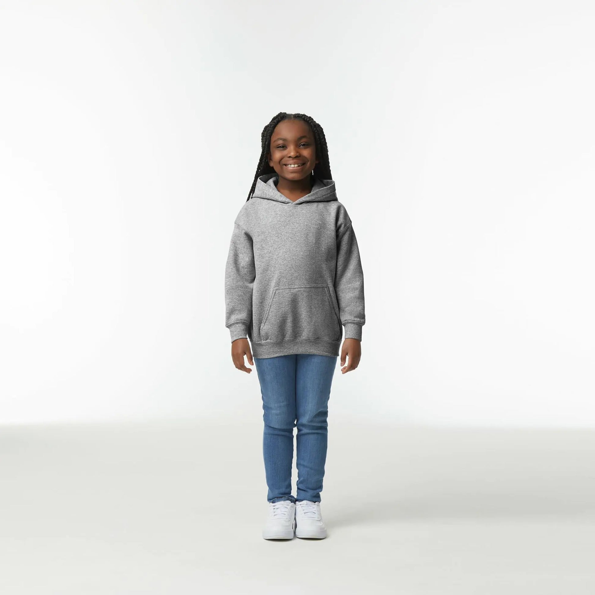 Kids play hard. The Gildan Youth Hooded Sweatshirt works just as hard to keep up with whatever they throw at it. From the backyard to the playground, with a double-lined hood and soft, pill-resistant air-jet soft yarn, it delivers long-lasting soft comfort along with a smooth, decorator-friendly, finish.
